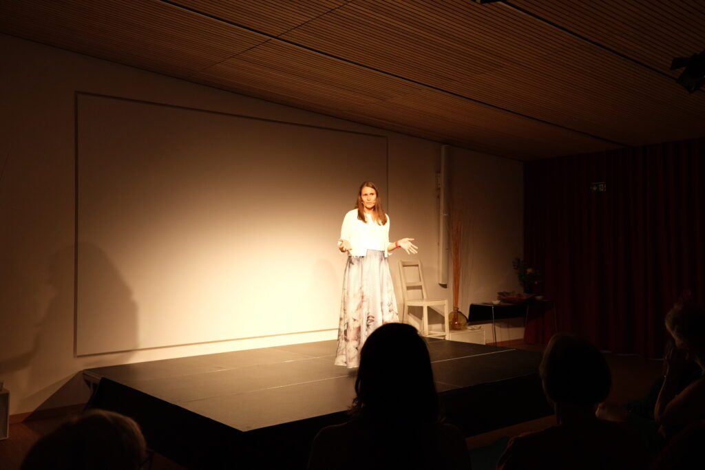 Ausgehend von ihrer eigenen Biografie zeigte sie, wie dieses Wissen im Laufe des Lebens leiser wird und doch nie verloren geht.
